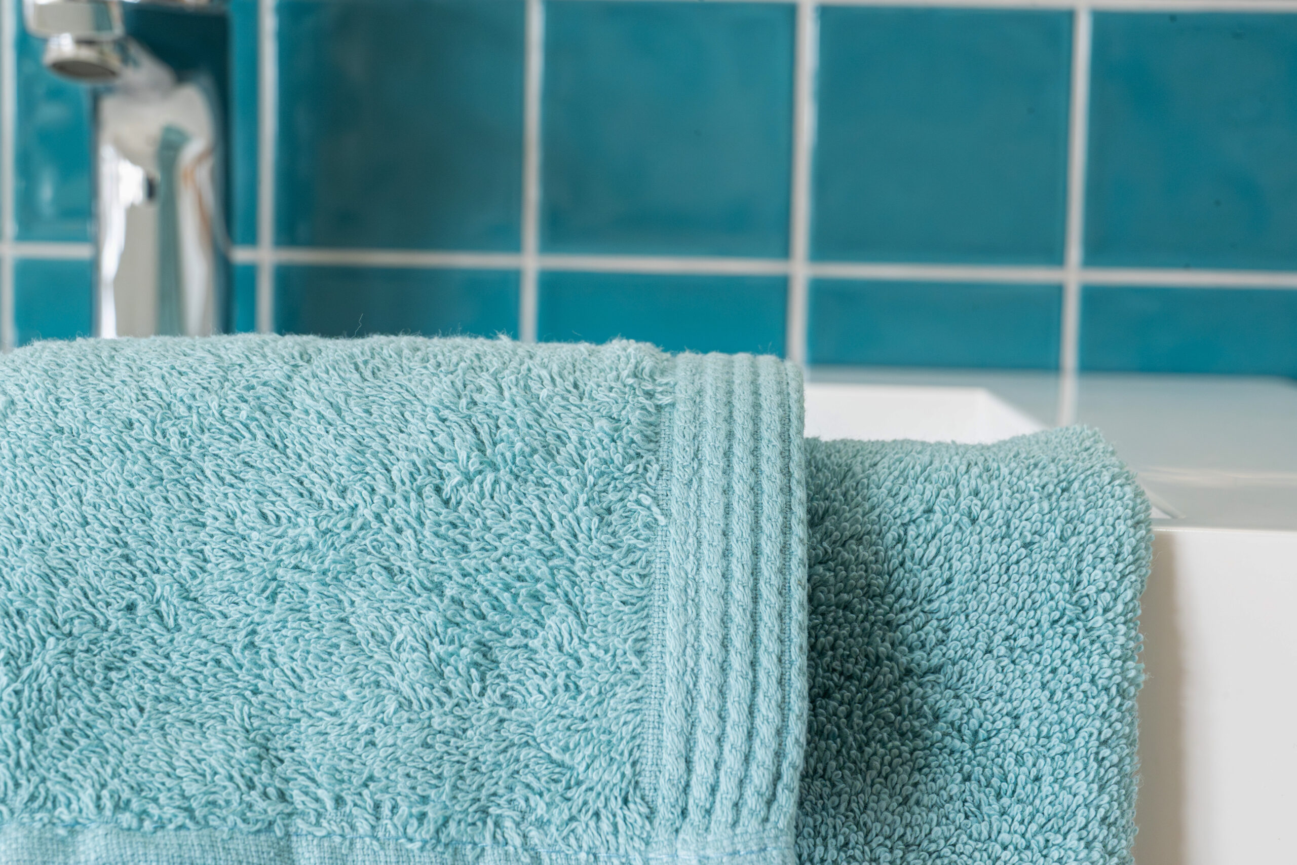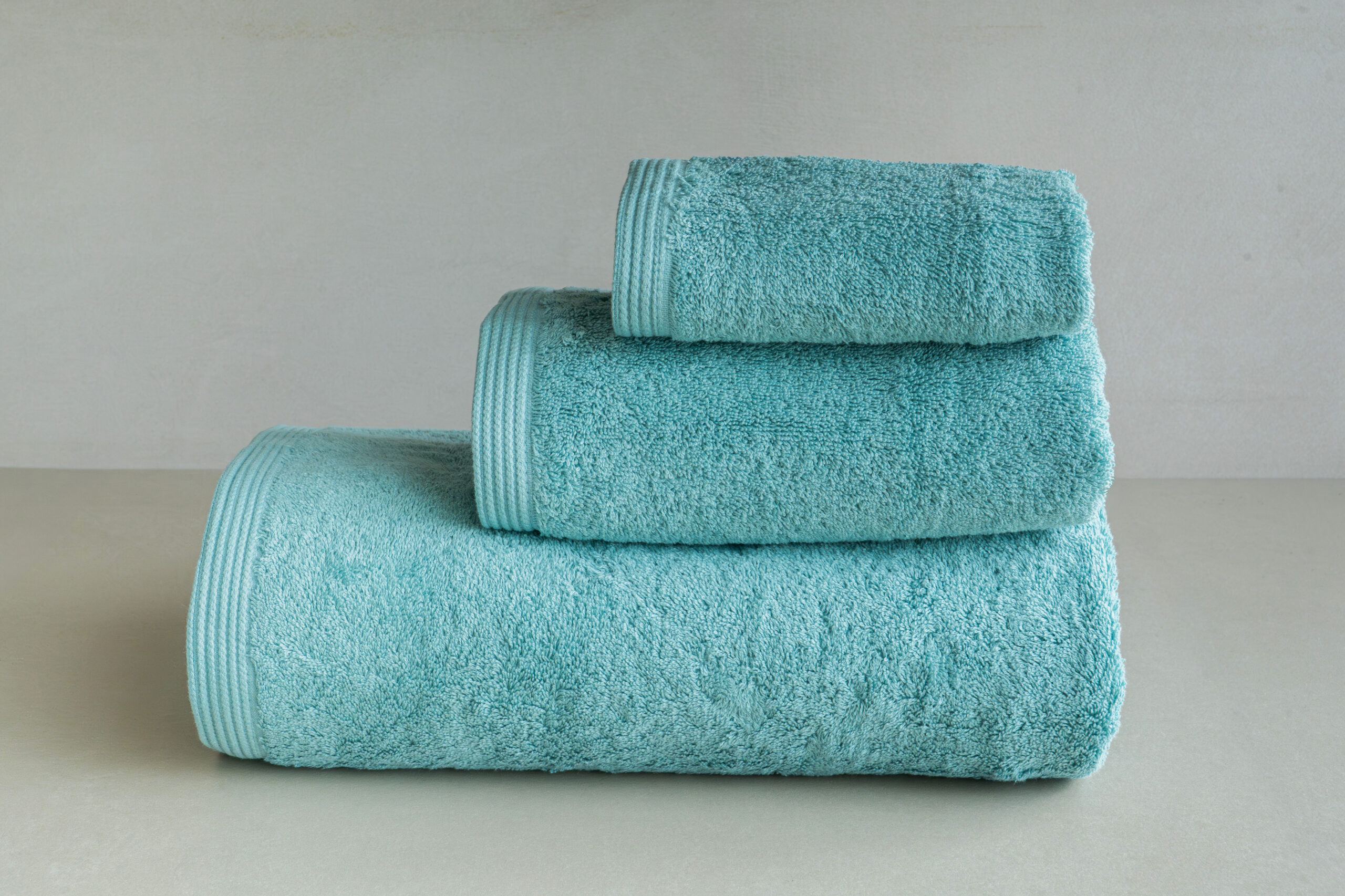 Conjunto de Banho Liso Baltico em algodão penteado. Macio, absorvente e fabricado em Portugal.