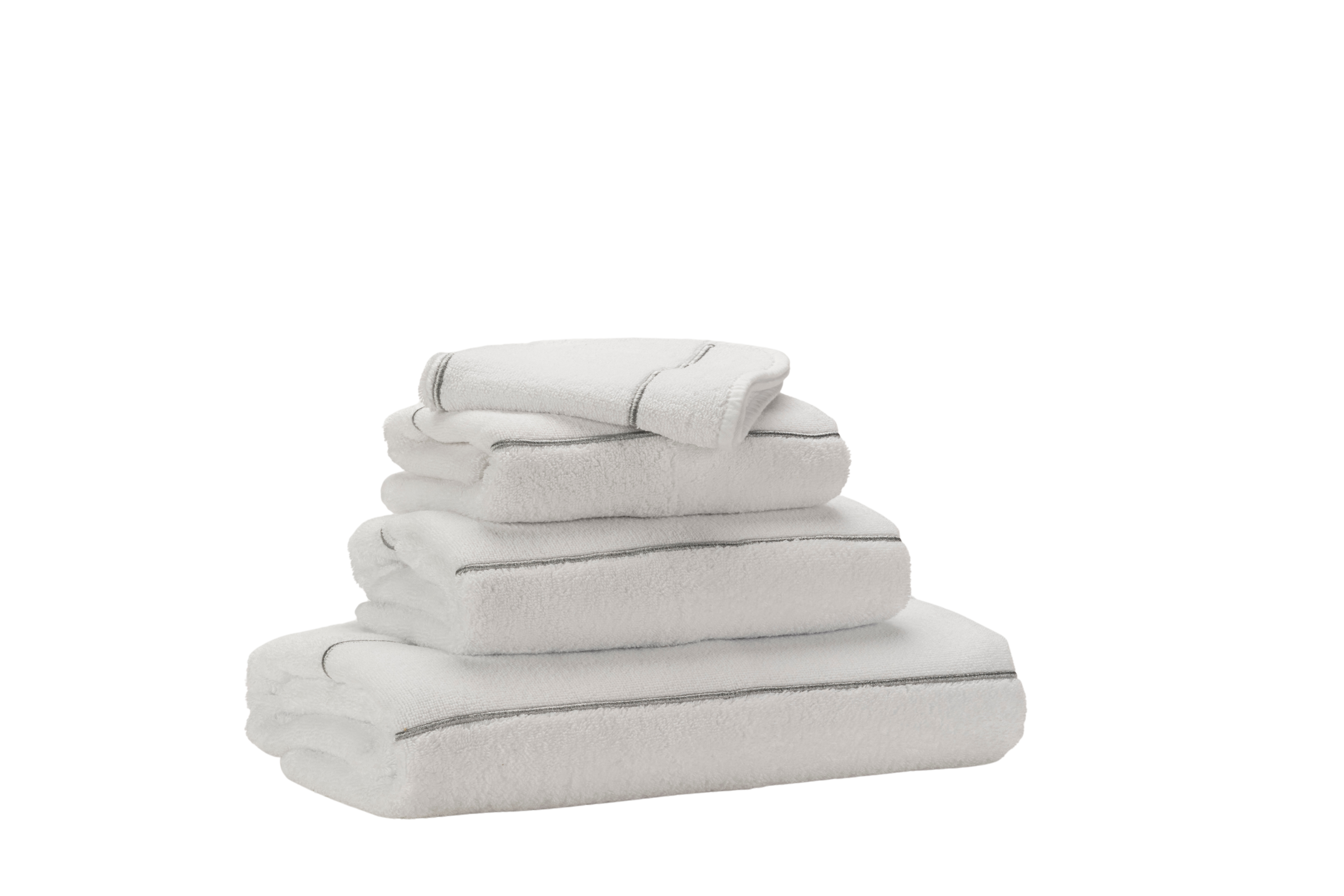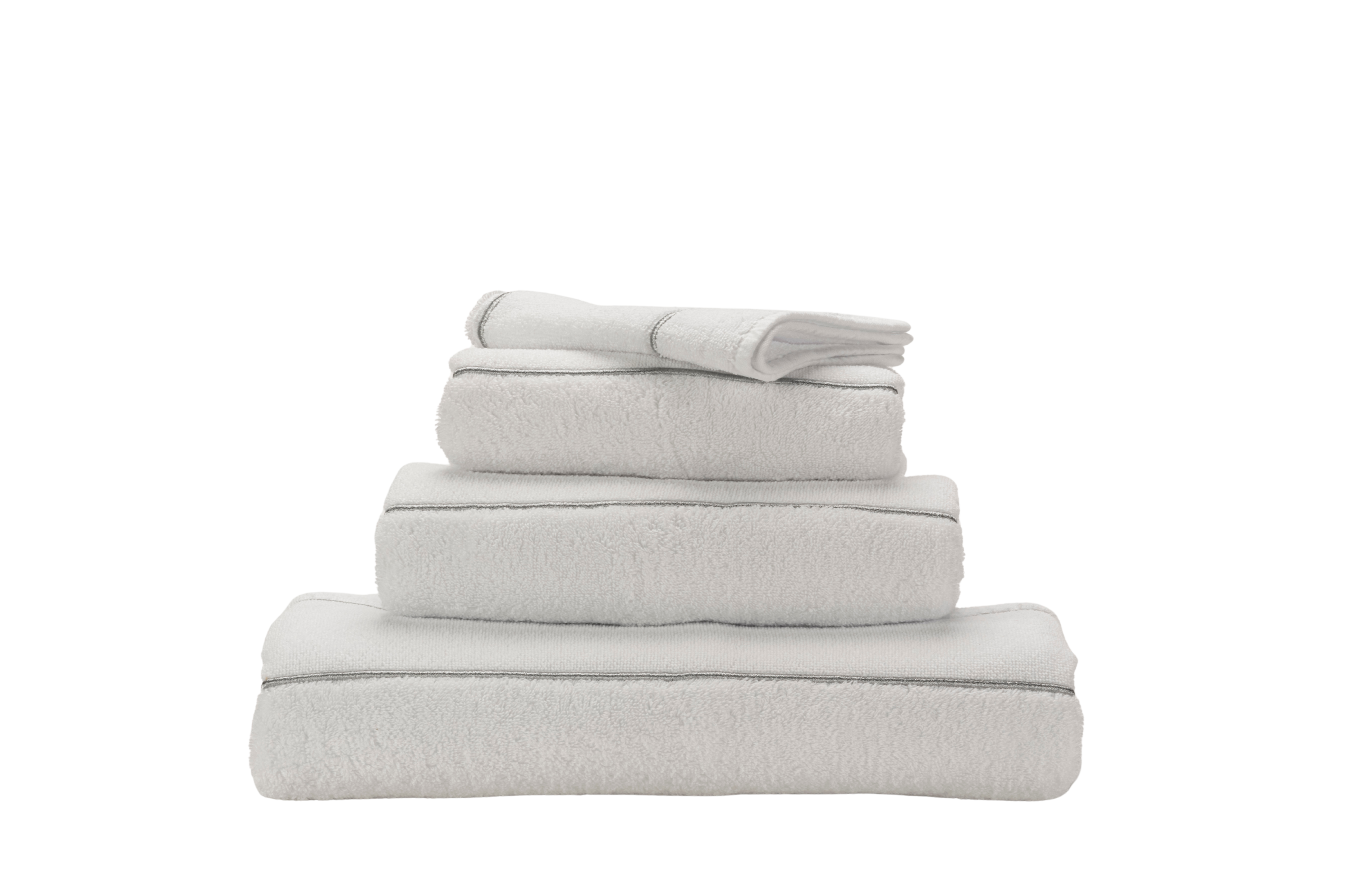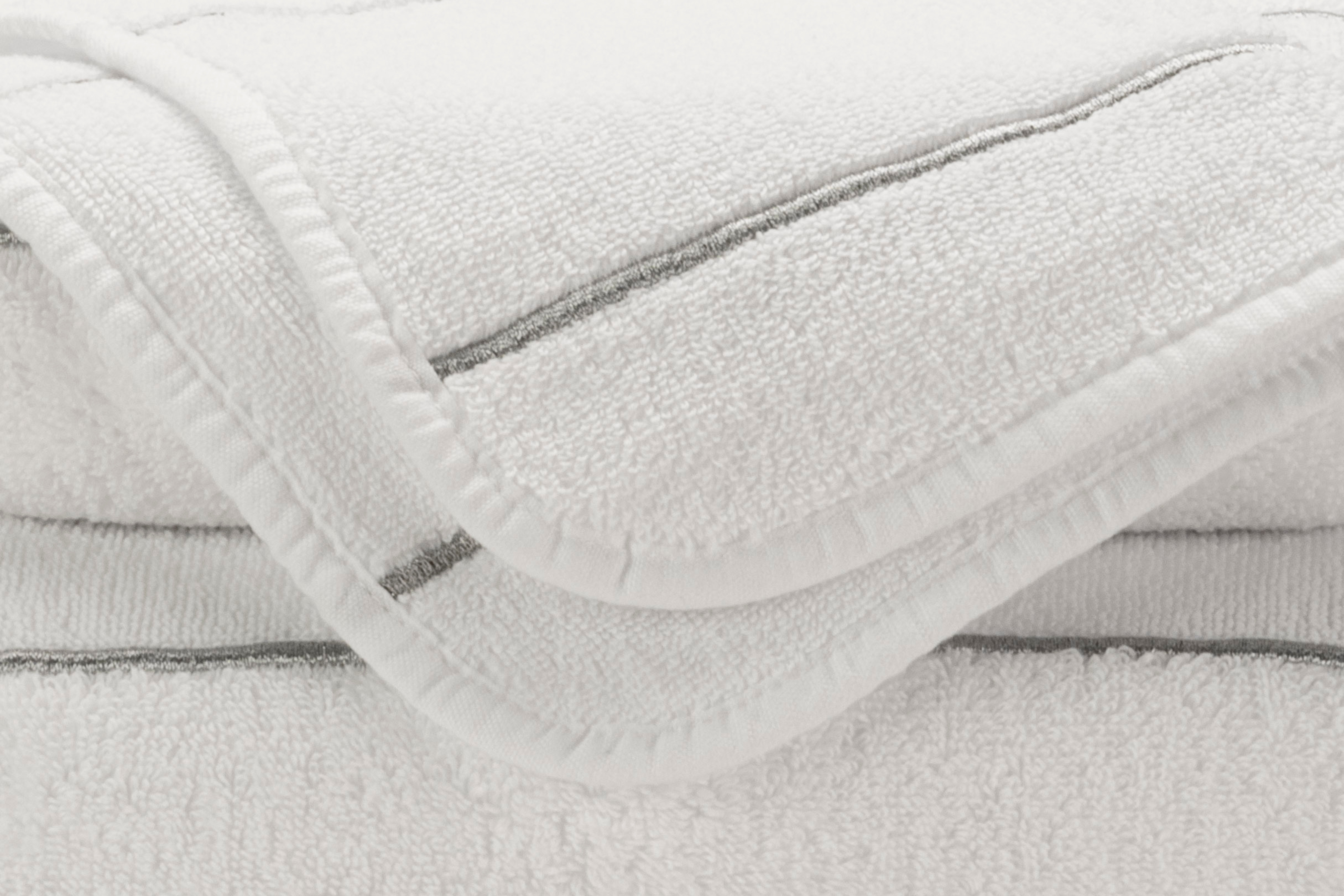 A toalha Lara da Abyss & Habidecor redefine o luxo no quotidiano. O detalhe bordado em duas linhas prateadas subtis eleva o seu design com um toque de requinte discreto, sem perder a simplicidade elegante.