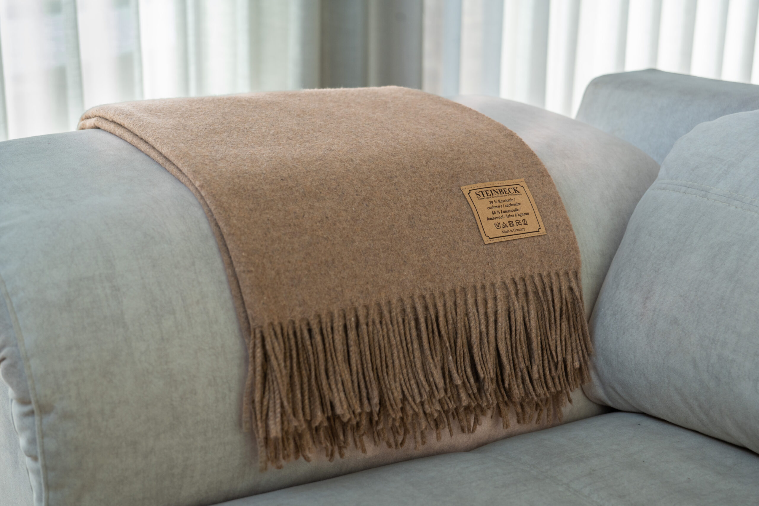 Elegância e suavidade num só toque. Esta manta em lambswool e caxemira envolve os seus dias de conforto e sofisticação.
